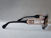 CAZALの製品はドイツの伝統的な職人技術をベースにしつつ、時代に左右されることなく、しかっし常にオリジナリティに溢れ、時にはアヴァンギャルドでもある。極端に幅太のテンプルに施された″抜き″のデザインや直線と曲線を巧みに織り混ぜた幾何学的装飾。あるいは職人の手によって色付けされる変幻自在なカラーリングなどは、そうしたカザールの大胆で冒険的な一面を実感できる。しかも、製品個々に封じ込められた強烈な個性の中に、天才デザイナー:カリ・ツァローニ氏のファッションに対する確固たる哲学さえ感じ取れます。