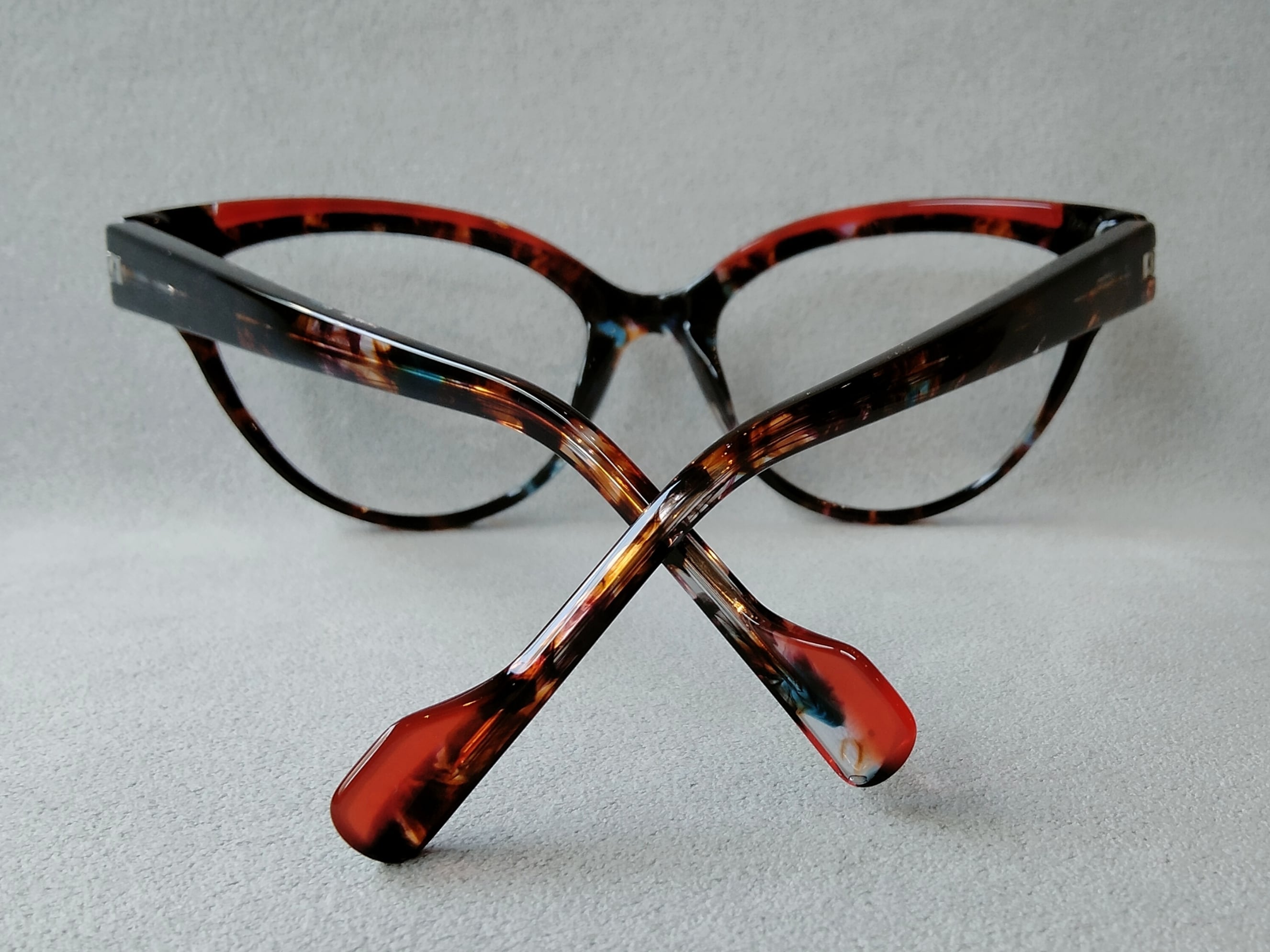 コレクションの特徴はデザイナー独自の感性を活かした大胆なフォルムとカラーリング。クラシックスタイルを踏襲しながら、アセテートプラスチック生地とメタル素材を組み合わせた印象的な佇まいはお家芸。近年ではイタリア「マツケリ社」の高級アセテート生地をパズルのように貼り合わせ巧みなカットにより芸術的ともいえる重層的なカラーリングを実現。また、2025年リリースモデルより独自開発のネジを使わないバネ丁番に仕様を変更し、技術面でも抜かりなく進化し続けている。
