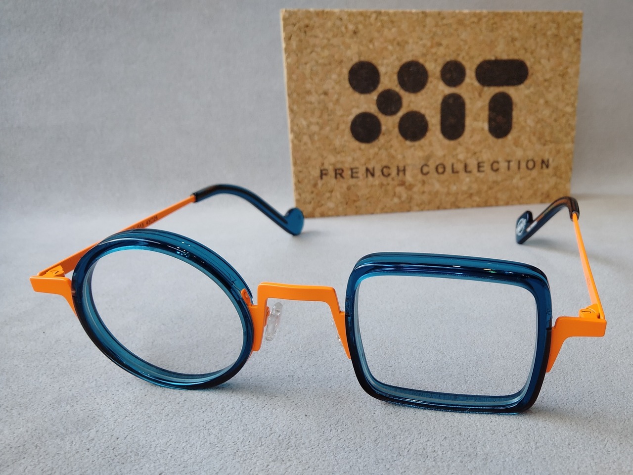 ブランドの定番、レンズのシェイプを丸と四角にした左右非対称モデル。イタリアMAZZUCCHLLI社製の高級アセテート生地とステンレスを用いてフランスでハンドメイド。カラーのコントラストもデザインにメリハリを効かせている。テンプルエンドもまた、丸と四角にデザインされており、遊び心満載です。ノーズパッドはアジア人でもフィット可能なクリングスアームタイプ。