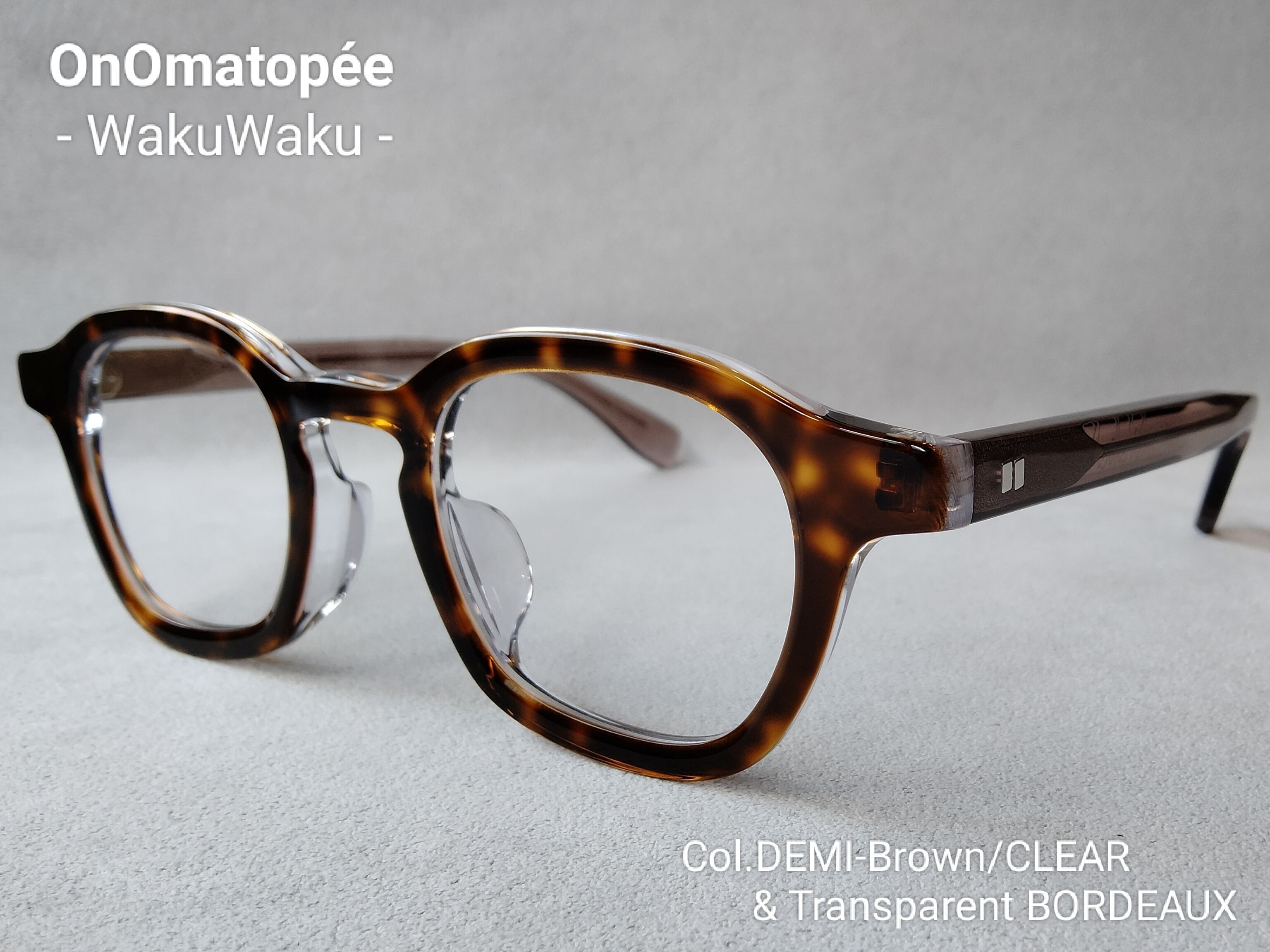 OnOmatopée (オノマトペ)『Waku Waku(ワクワク)』Color:DEMI-BROWN/CLEAR&Transparent BORDEAUX//CR39HD-W[Clear lens Sunglasses]