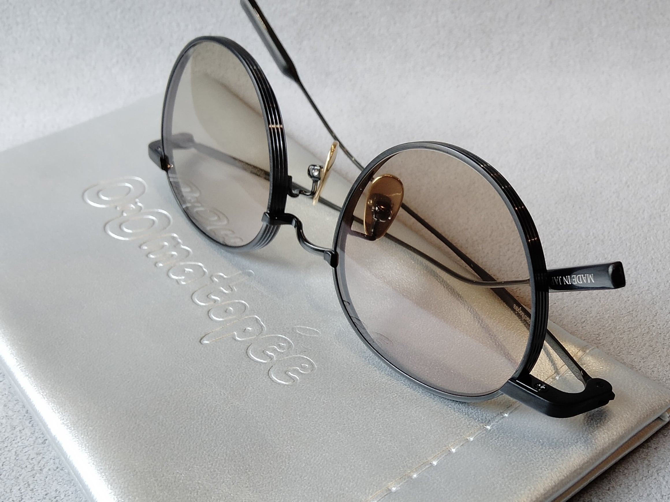 「サングラスを掛けて笑顔に」という思いを込め、リリースされたセカンドコレクション「KusuKusu(クスクス)」。太目のチタンリムをラウンドに近いボストンシェイプに。定番のレンズシルエットをシンプルに落とし込んだ力作。サイドのβチタンのフィット感とテンプルエンドにボリューム感を出し、掛けた時のバランスをとり、デザイン性と掛け心地を両立させただけでなく、鯖江製Titaniumでここまで価格をリーズナブルに仕上げた素晴らしいモデル。