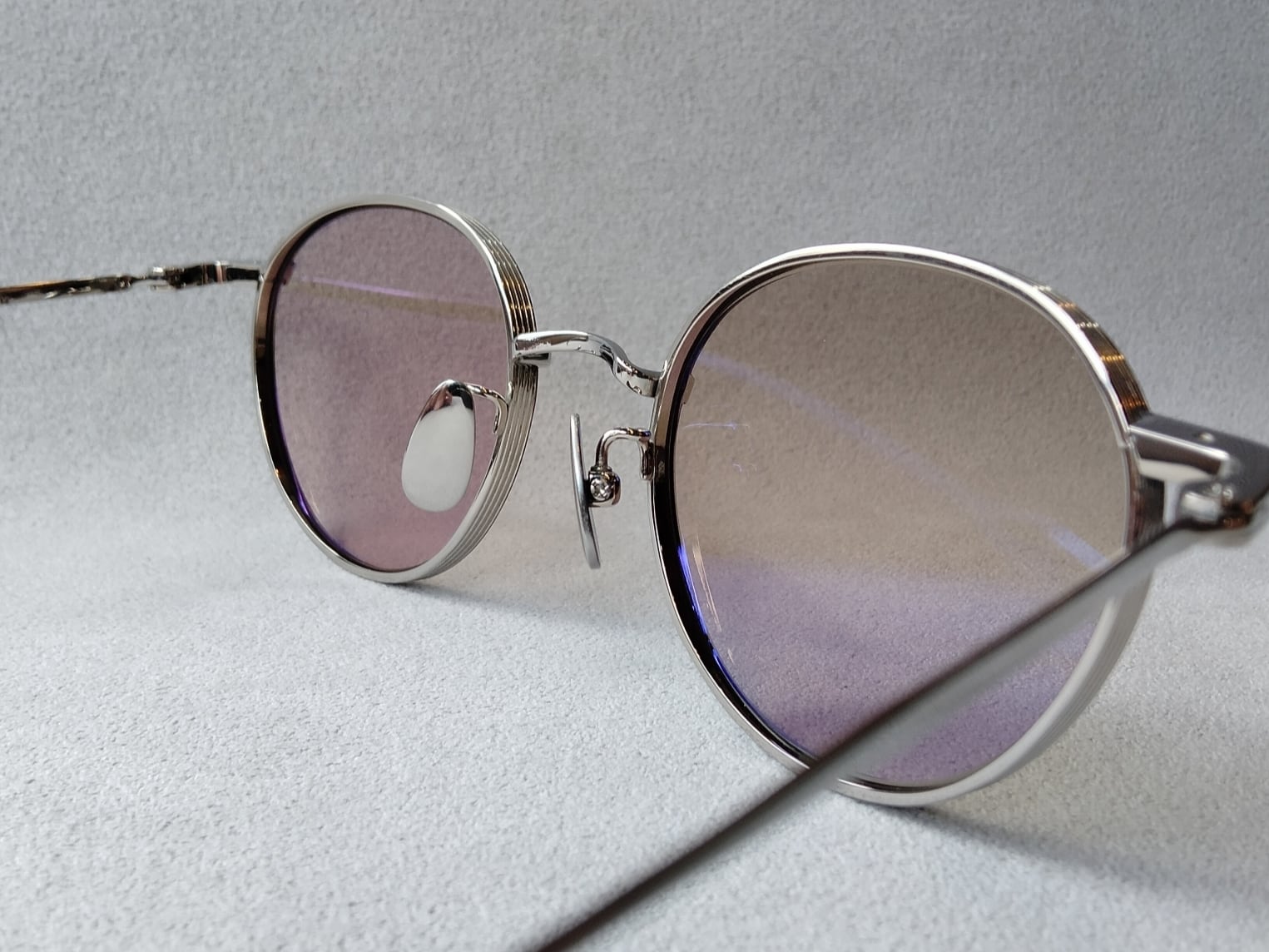 「サングラスを掛けて笑顔に」という思いを込め、リリースされたセカンドコレクション「KusuKusu(クスクス)」。太目のチタンリムをラウンドに近いボストンシェイプに。定番のレンズシルエットをシンプルに落とし込んだ力作。サイドのβチタンのフィット感とテンプルエンドにボリューム感を出し、掛けた時のバランスをとり、デザイン性と掛け心地を両立させただけでなく、鯖江製Titaniumでここまで価格をリーズナブルに仕上げた素晴らしいモデル。