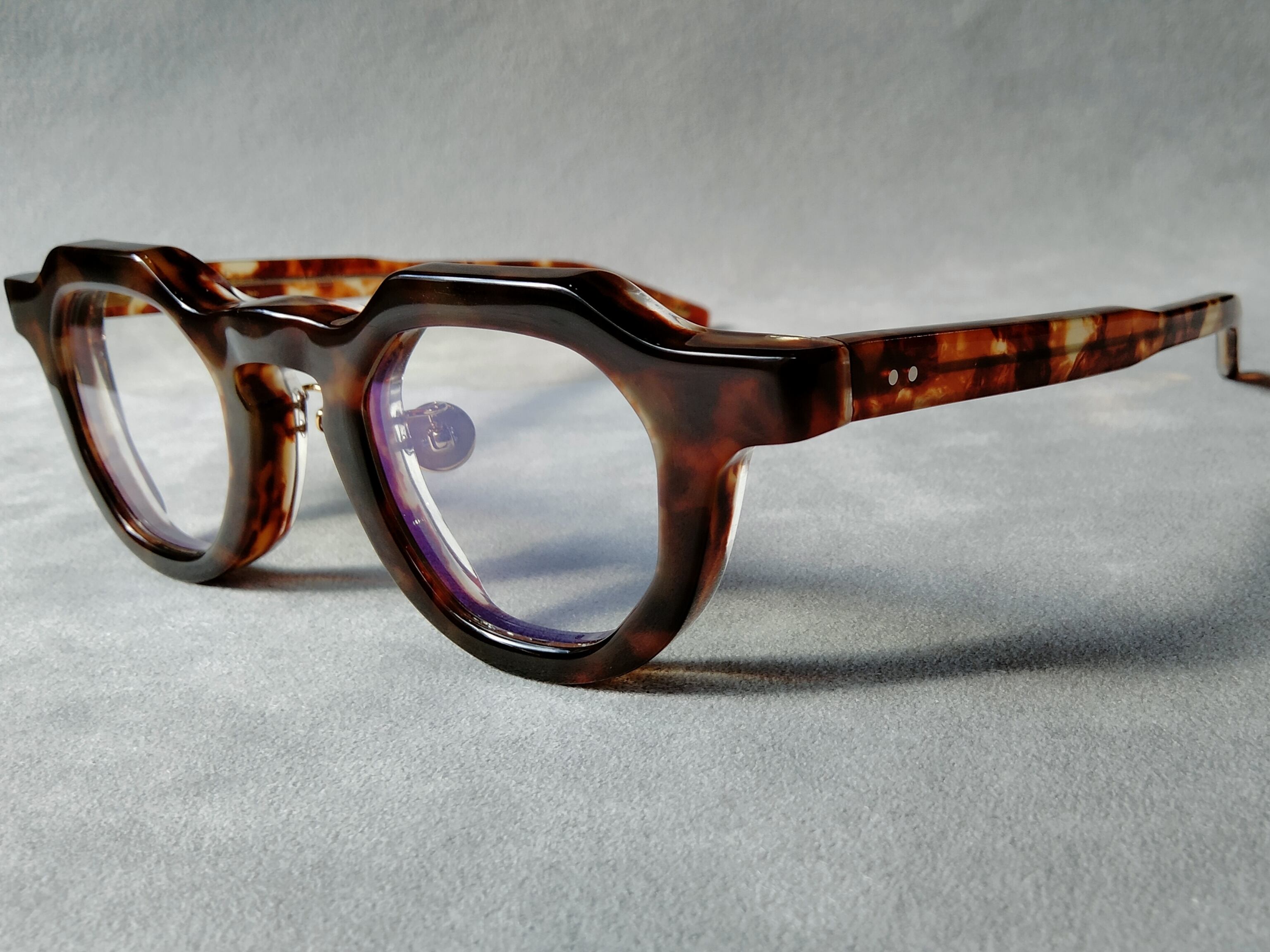 眼鏡職人×美術技法から生み出される「コラージュ」をコンセプトにありとあらゆる性質とロジックの異なる素材を組み合わせ芸術的な創作技法や美術技法を取り入れたEYEWEAR。どこかフランスのヴィンテージ眼鏡っぽい香りがするデザインと日本の眼鏡職人のハンドメイドの仕上がりに、学生時代から美術とファッションに没頭してきたというデザイナーの感性が合わさり他の鯖江眼鏡とは全く異なる作品に仕上がっています。