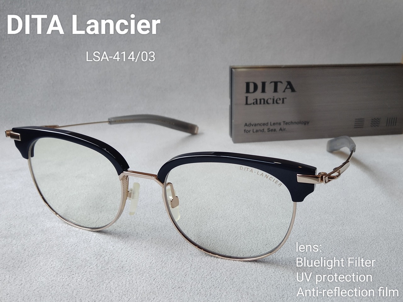 DITA Lancier (ディータランシアー) LSA-414-03 Navy-White Gold // Clear Blue Light Filter