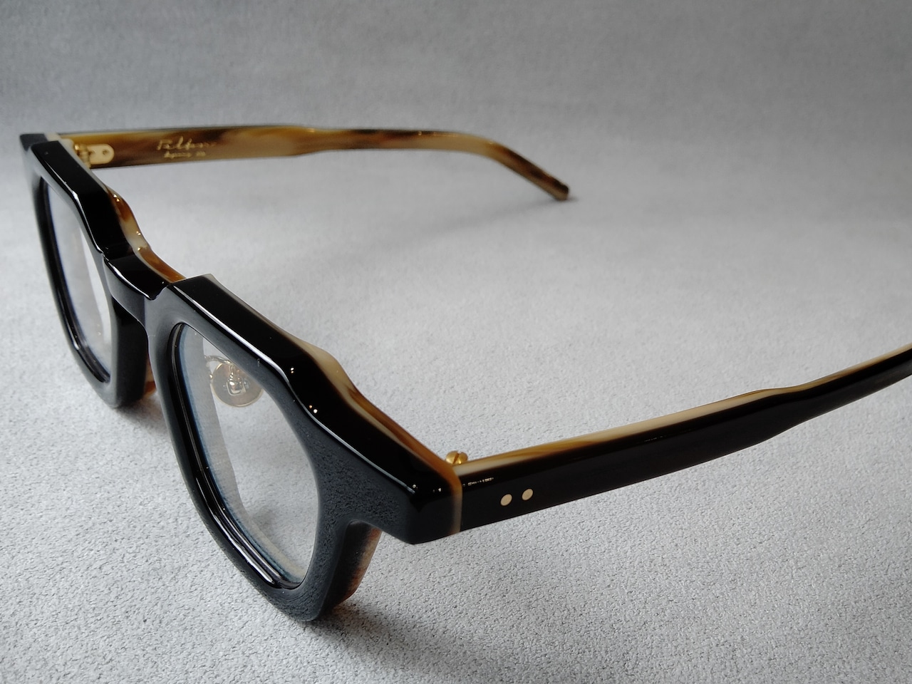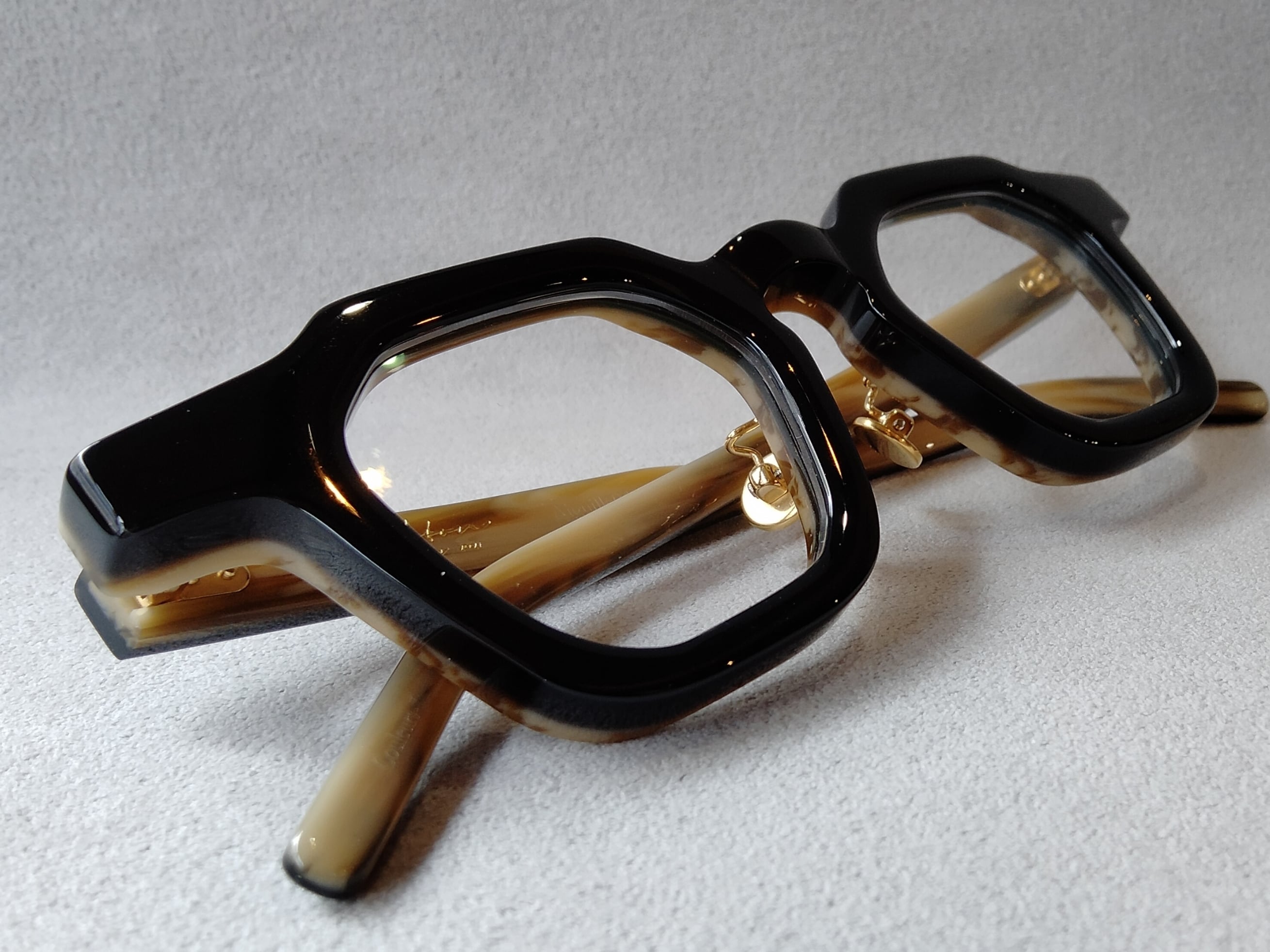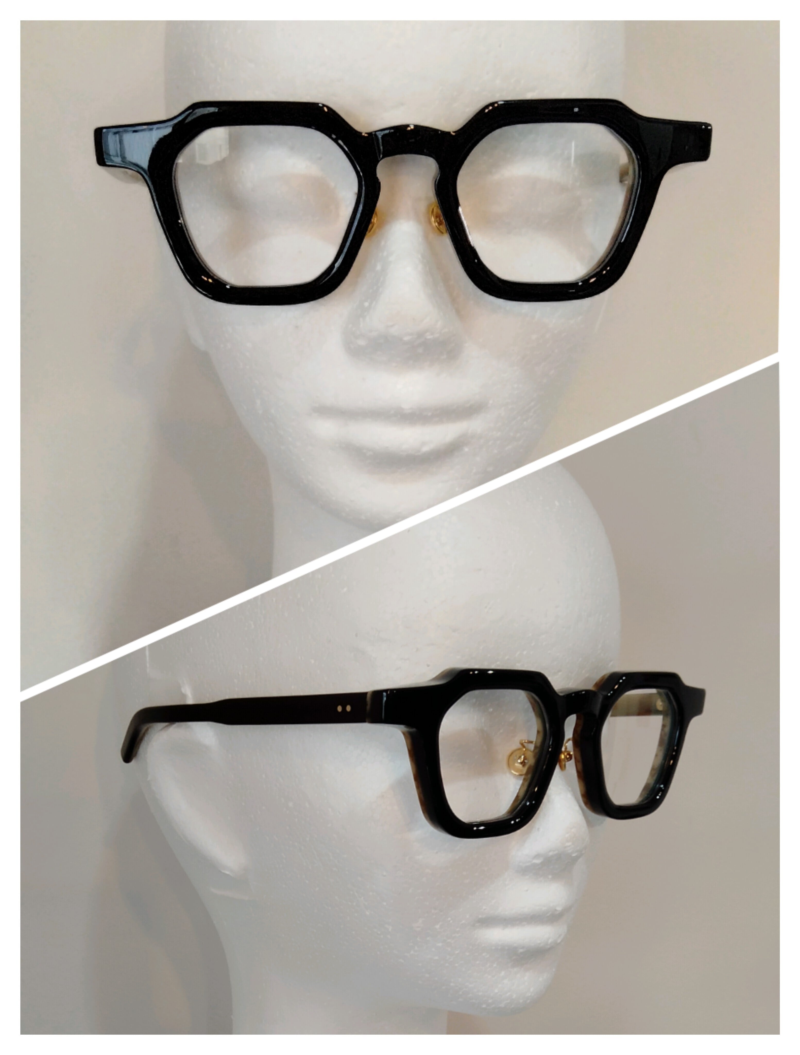 眼鏡職人×美術技法から生み出される「コラージュ」をコンセプトにありとあらゆる性質とロジックの異なる素材を組み合わせ芸術的な創作技法や美術技法を取り入れたEYEWEAR。どこかフランスのヴィンテージ眼鏡っぽい香りがするデザインと日本の眼鏡職人のハンドメイドの仕上がりに、学生時代から美術とファッションに没頭してきたというデザイナーの感性が合わさり他の鯖江眼鏡とは全く異なる作品に仕上がっています。