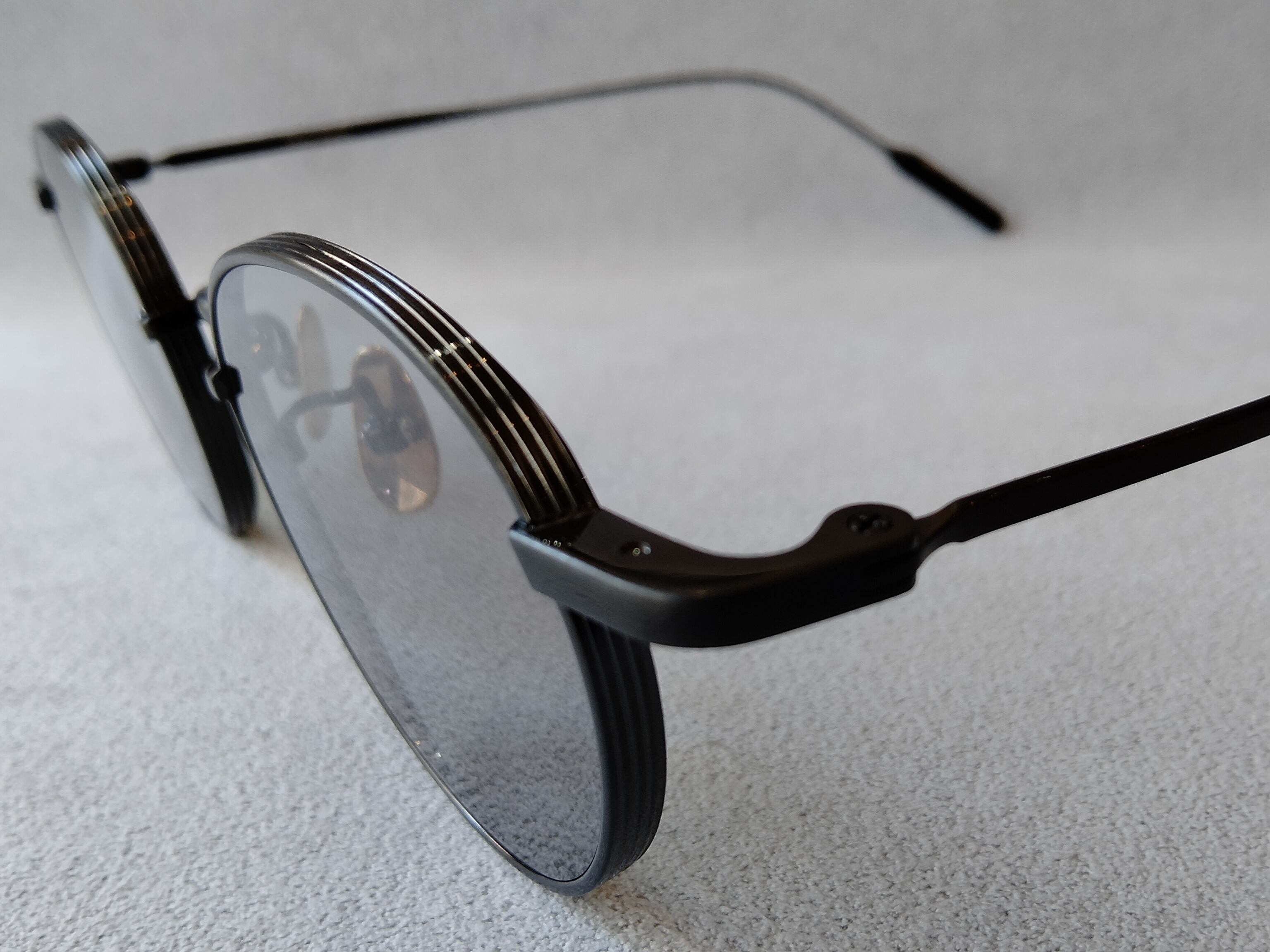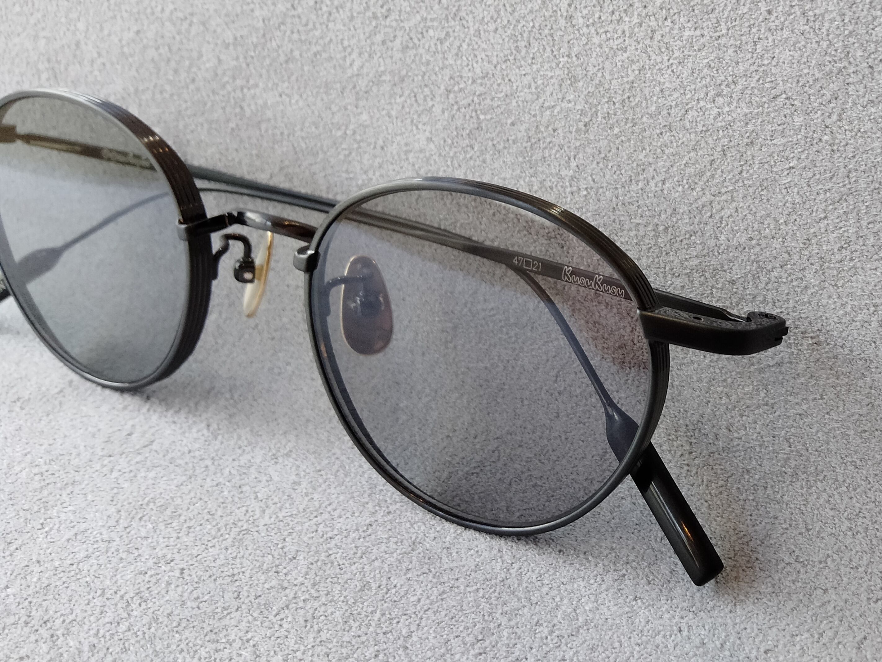 「サングラスを掛けて笑顔に」という思いを込め、リリースされたセカンドコレクション「KusuKusu(クスクス)」。太目のチタンリムをラウンドに近いボストンシェイプに。定番のレンズシルエットをシンプルに落とし込んだ力作。サイドのβチタンのフィット感とテンプルエンドにボリューム感を出し、掛けた時のバランスをとり、デザイン性と掛け心地を両立させただけでなく、鯖江製Titaniumでここまで価格をリーズナブルに仕上げた素晴らしいモデル。